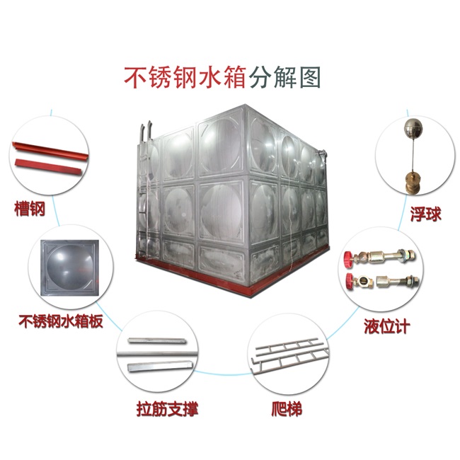不銹鋼水箱是為了工程建設(shè)、高層住宅供水系統(tǒng)配套的專用貯供水設(shè)備。本產(chǎn)品選用進(jìn)口國(guó)際通用食品級(jí)不銹鋼SUS304板材制造,新概念設(shè)計(jì)采用先進(jìn)的模壓成型,氣體保護(hù)焊接等先進(jìn)工藝制造,具有造型美觀、重量輕、造價(jià)低、壽命長(zhǎng)、衛(wèi)生無(wú)毒、用途廣等優(yōu)點(diǎn),是當(dāng)今國(guó)際最優(yōu)秀的貯供水設(shè)備。該水箱內(nèi)貯存的水質(zhì)經(jīng)北京衛(wèi)生防
