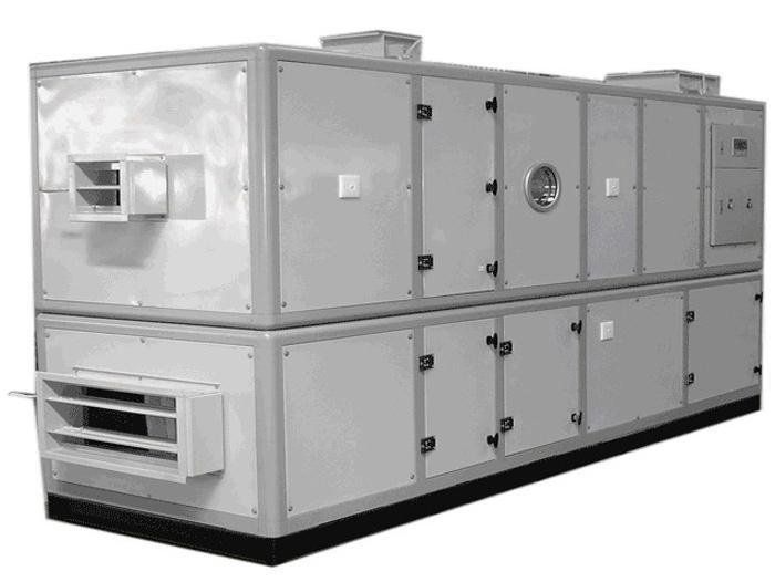機(jī)組主要構(gòu)成部件箱體面板外層是高強(qiáng)度的彩色鋼板,內(nèi)層是輕質(zhì)隔熱材料聚苯乙烯或聚氨脂,通過(guò)自動(dòng)復(fù)合機(jī),用高強(qiáng)度粘合劑將兩者粘合而成,具有重量輕、機(jī)械強(qiáng)度高、隔熱、隔音、耐腐蝕、耐水蒸汽滲透及耐氣候性等優(yōu)良性能??蚣懿捎脙?yōu)質(zhì)鋁合金框架或者優(yōu)質(zhì)型鋼框架。底座為自帶鋼性底座,表面進(jìn)行防腐處理。風(fēng)機(jī)采用